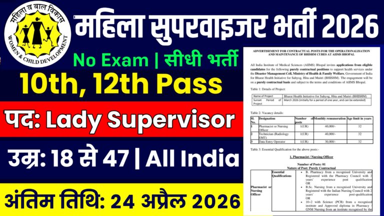 Anganwadi Supervisor Recruitment 2026 – Apply Online for Lady Supervisor Post
