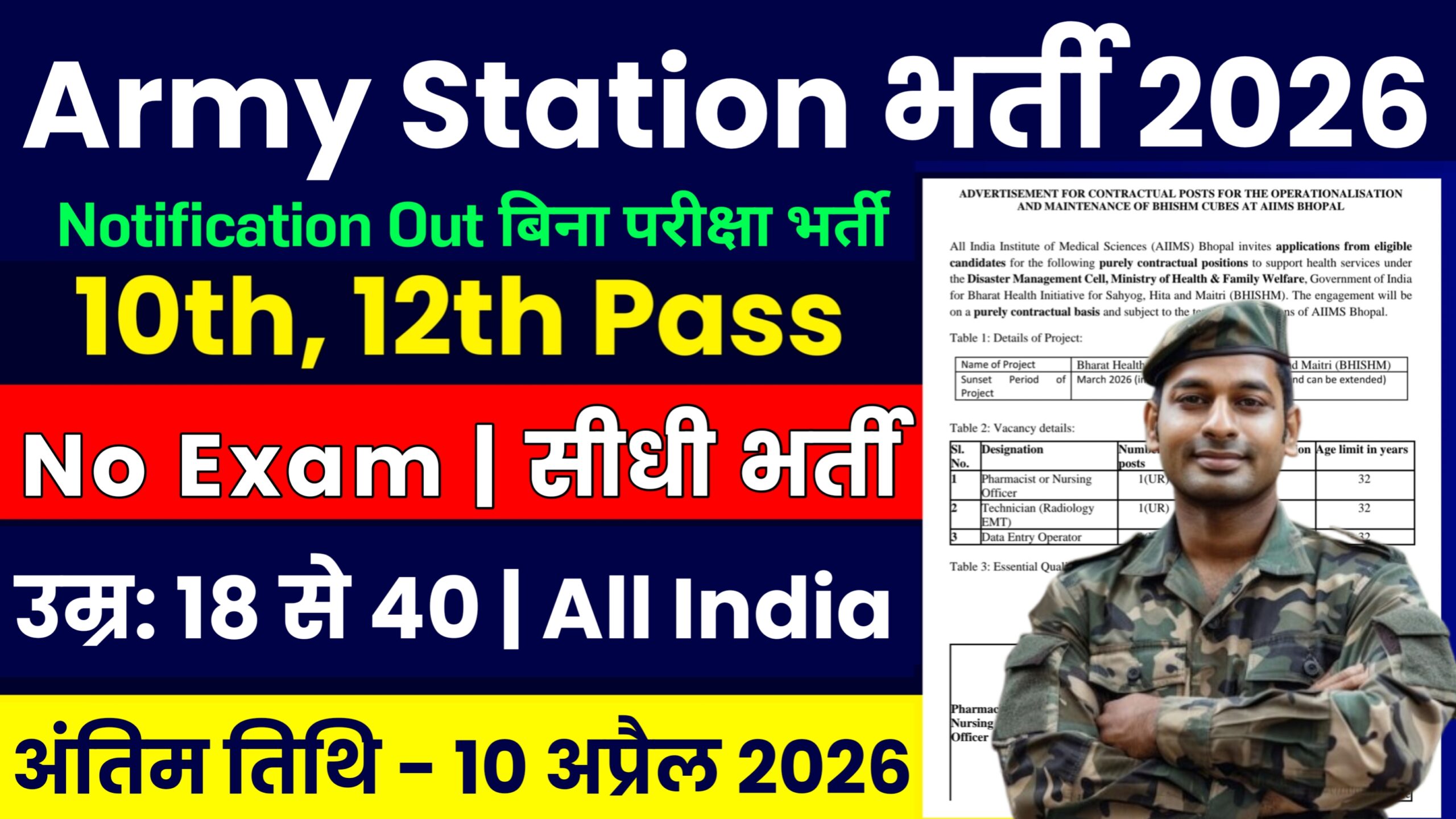 рджреЛрд╕реНрддреЛ 2026 рдореЗрдВ Indian Army рдореЗрдВ рдЖрдИ рд╣реИ рдирдИ рднрд░реНрддреА рдЬрд┐рд╕рдХреЗ рд▓рд┐рдП рд╕рднреА рд▓реЛрдЧ рдСрдлрд▓рд╛рдЗрди рдЖрд╡реЗрджрди рдХрд░реЗрдВрдЧреЗ рдЬреЛрдХрд┐ Army Station Shimla рдореЗрдВ рднрд░реНрддреА рдкрд╛рдиреЗ рд╡рд╛рд▓реЛрдВ рдХреЗ рд▓рд┐рдП рдпреЗ рдПрдХ рд╢рд╛рдирджрд╛рд░ рдореМрдХрд╛ рд╣реИ. рдЗрдЪреНрдЫреБрдХ рдЙрдореНрдореАрджрд╡рд╛рд░ рднрд░реНрддреА рдХреЗ рд▓рд┐рдП рдЖрдпреБ рд╕реАрдорд╛, рд╢реИрдХреНрд╖рдгрд┐рдХ рдпреЛрдЧреНрдпрддрд╛, рдФрд░ рдЖрд╡реЗрджрди рдХреА рдЕрдВрддрд┐рдо рддрд┐рдерд┐, рднрд░реНрддреА рдкреНрд░рдХреНрд░рд┐рдпрд╛, рд╕рд╛рде рдореЗрдВ рд╕рднреА рдорд╣рддреНрд╡рдкреВрд░реНрдг рджрд╕реНрддрд╛рд╡реЗрдЬ рдФрд░ рдлреЙрд░реНрдо рднрд░рдиреЗ рдХреА рдкреНрд░рдХреНрд░рд┐рдпрд╛ рдЖрджрд┐ рдорд╣рддреНрд╡рдкреВрд░реНрдг рдЬрд╛рдирдХрд╛рд░реА рджреЗрдЦ рд╕рдХрддреЗ рд╣реИрдВ рд╡рд┐рд╕реНрддреГрдд рдЬрд╛рдирдХрд╛рд░реА рдХреЗ рд▓рд┐рдП indianarmy.nic.in рдиреЛрдЯрд┐рдлрд┐рдХреЗрд╢рди рдХреЛ рджреЗрдЦреЗрдВ рд╕рд╛рд░реА рдЬрд╛рдирдХрд╛рд░реА рдХреЛ рдЕрдЪреНрдЫреЗ рд╕реЗ рдкрдврд╝реЗ, рдЬрд┐рд╕рдХрд╛ рд▓рд┐рдВрдХ рдиреАрдЪреЗ рджрд┐рдП рдЧрдП рд╣реИрдВред