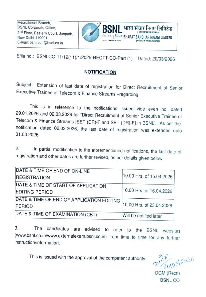 | Category | BSNL Senior Executive Trainee Recruitment 2026 |