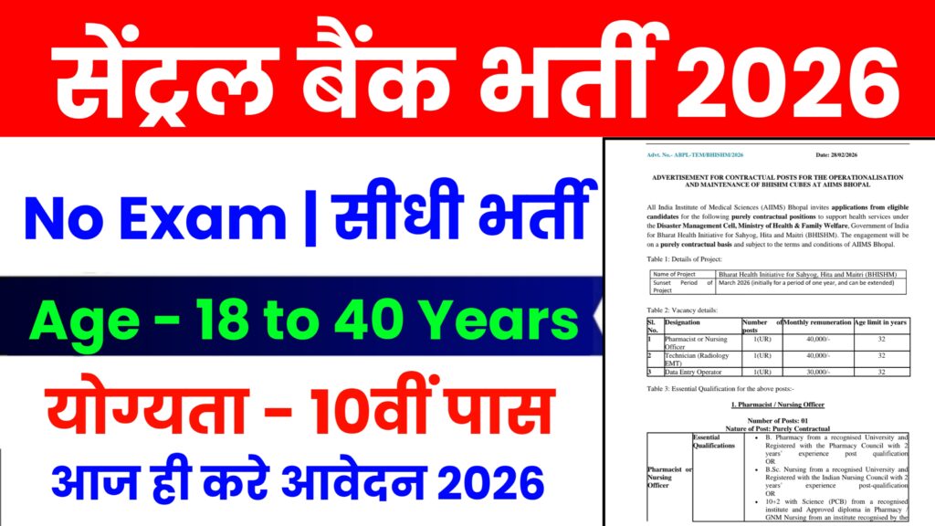Central Bank of India Recruitment 2026 – Apply Offline for Attender, Watchman & Other Posts Notification: CBI Bank has released a new recruitment notification for Multiple vacancies. The available posts include Attender, Watchman & Other Post. This is a good opportunity for candidates who want to work in the Central Bank Department.