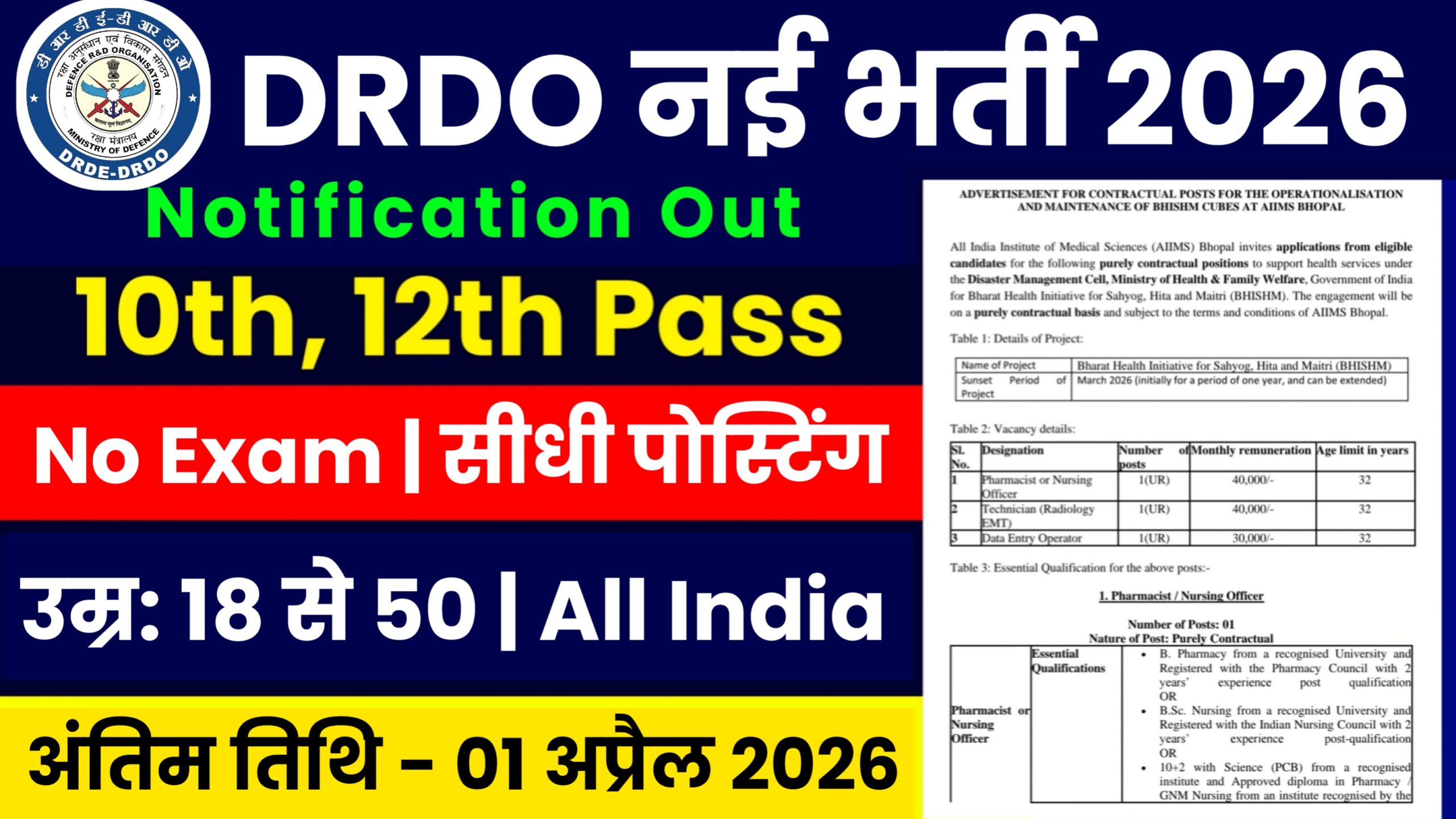 | Vacancy | DRDO नई भर्ती 2026 |