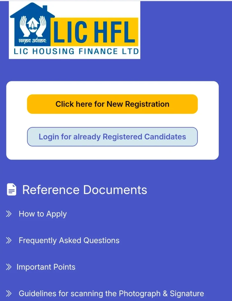 जो भी उम्मीदवार इस भर्ती के लिए आवेदन करना चाहते है जो कि LIC HFL Junior Assistant Recruitment 2026 में ऑनलाइन आवेदन मांगा गया हैं जिसे आप नीचे दिए गए कुछ महत्वपूर्ण स्टेप को ध्यान में रखते हुए आवेदन कर सकते है जो कि इस प्रकार है –