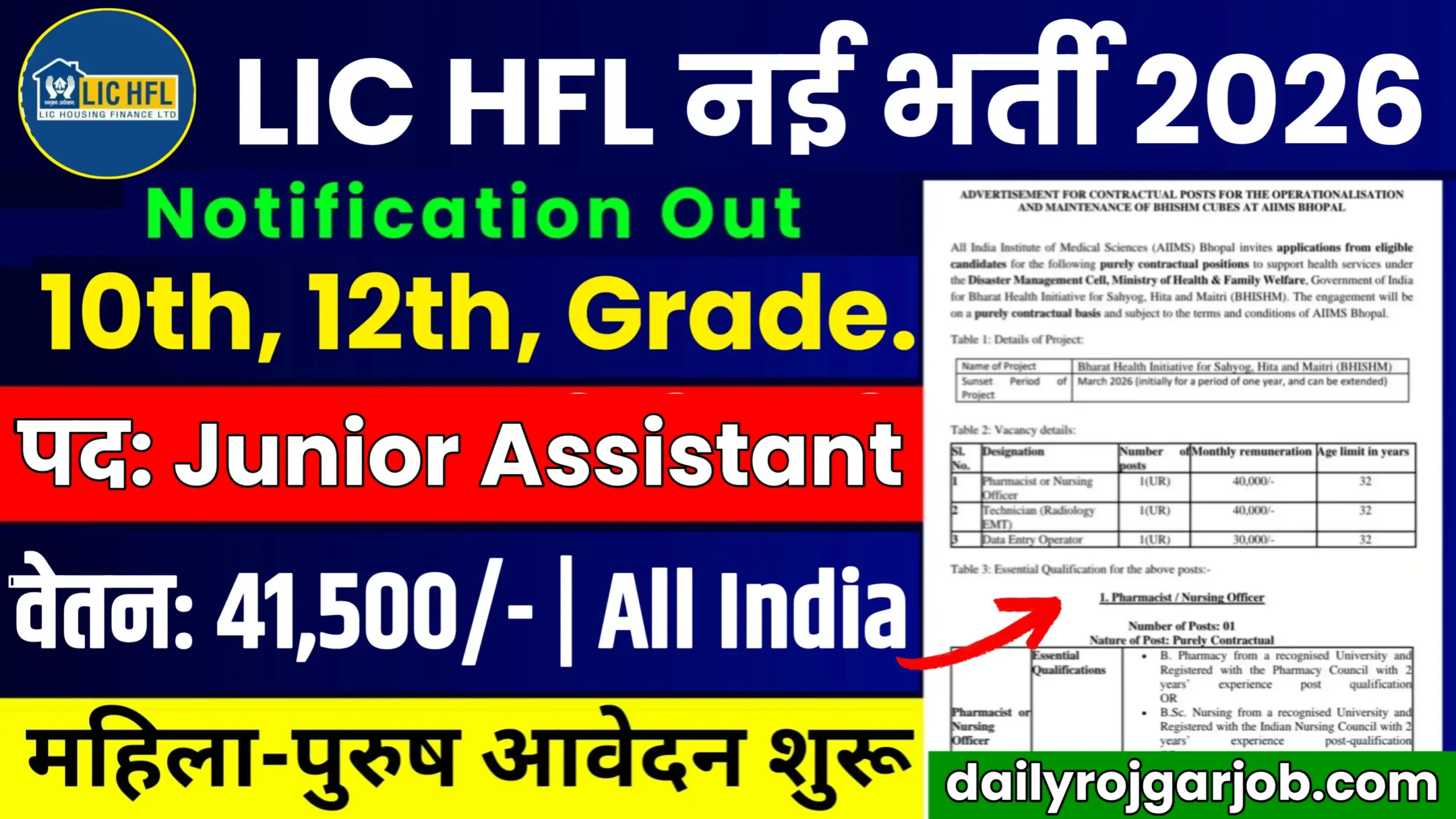 सभी उम्मीदवारों का हम अपने इस आर्टिकल पर तहे दिल से स्वागत करते हैं और साथ ही बता दे कि LIC HFL Junior Assistant Recruitment 2026 के लिए आवेदन करते समय फॉर्म फीस, उम्र सीमा, योग्यता और भर्ती प्रक्रिया आदि सभी जानकारी अपने शैक्षणिक योग्यता से मिलान कर लें ताकि आपको आवेदन करने में कोई दिक्कत का सामना ना करना पड़े।