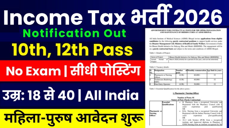 • Income Tax Recruitment 2026 – Notification Out For No Exam Direct Bharti, Age Limit, Salary